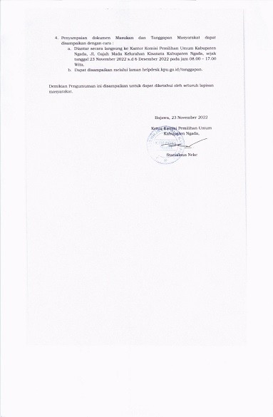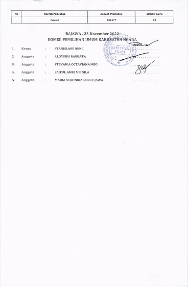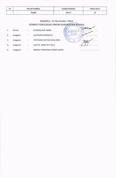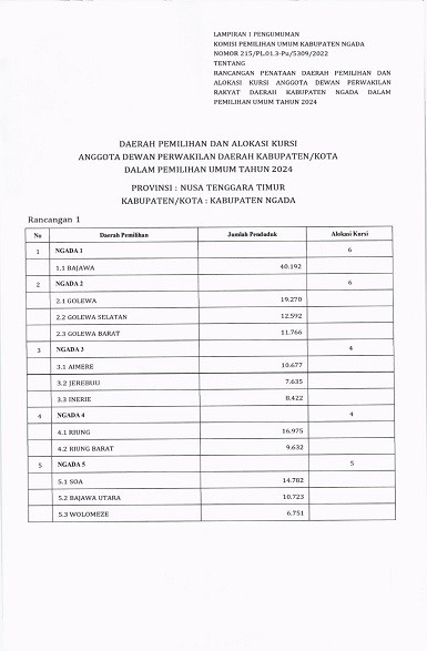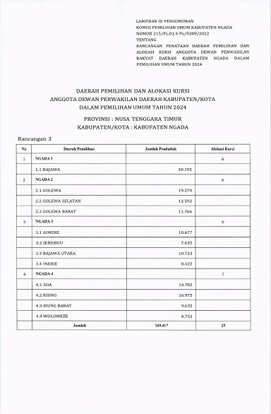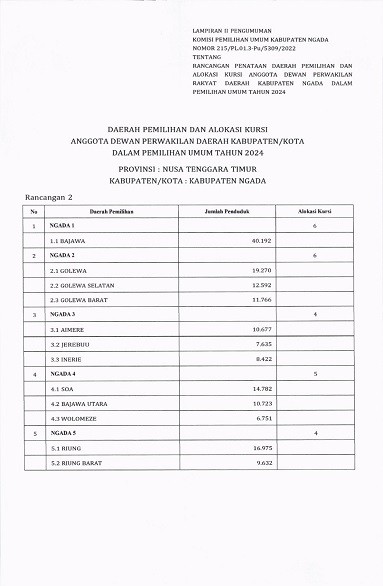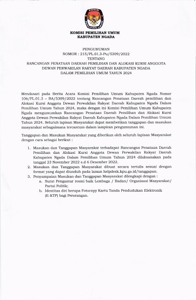 PENGUMUMAN RANCANGAN DAPIL DPRD KABUPATEN NGADA PADA PEMILU 2024