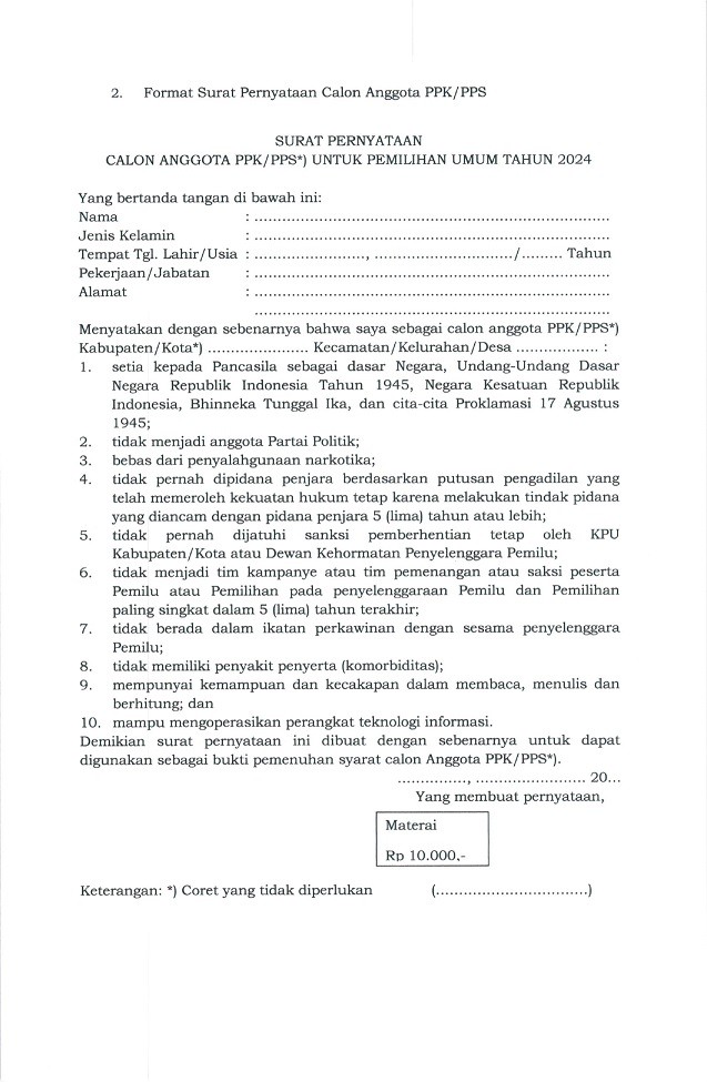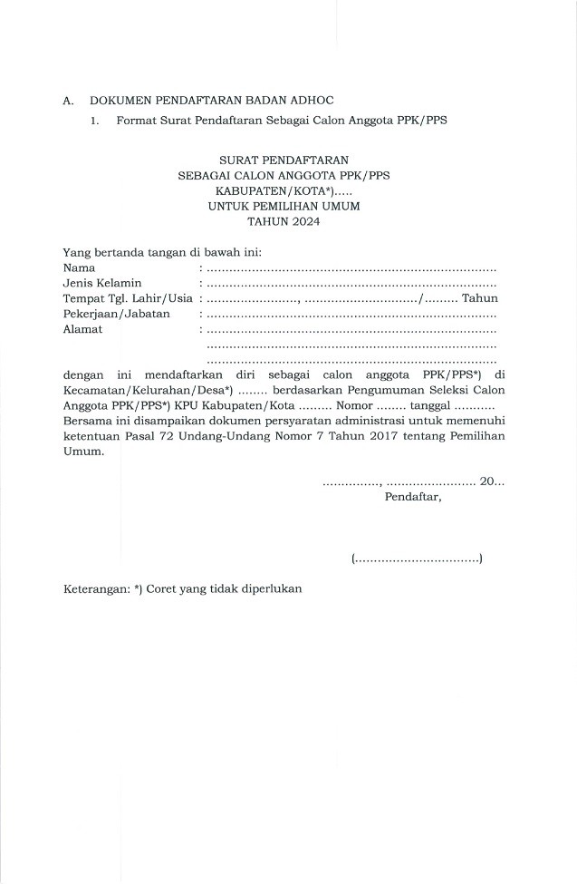 PENGUMUMAN TENTANG SELEKSI ANGGOTA PANITIA PEMILIHAN KECAMATAN UNTUK PEMILU TAHUN 2024