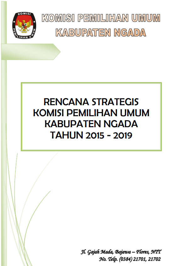 RENCANA STRATEGIS KPU KABUPATEN NGADA 2019-2024 Rabu, 22 Juli 2020 00:00 356 RENCANA STRATEGIS KOMISI PEMILIHAN UMUM KABUPATEN NGADA Baca Selengkapnya